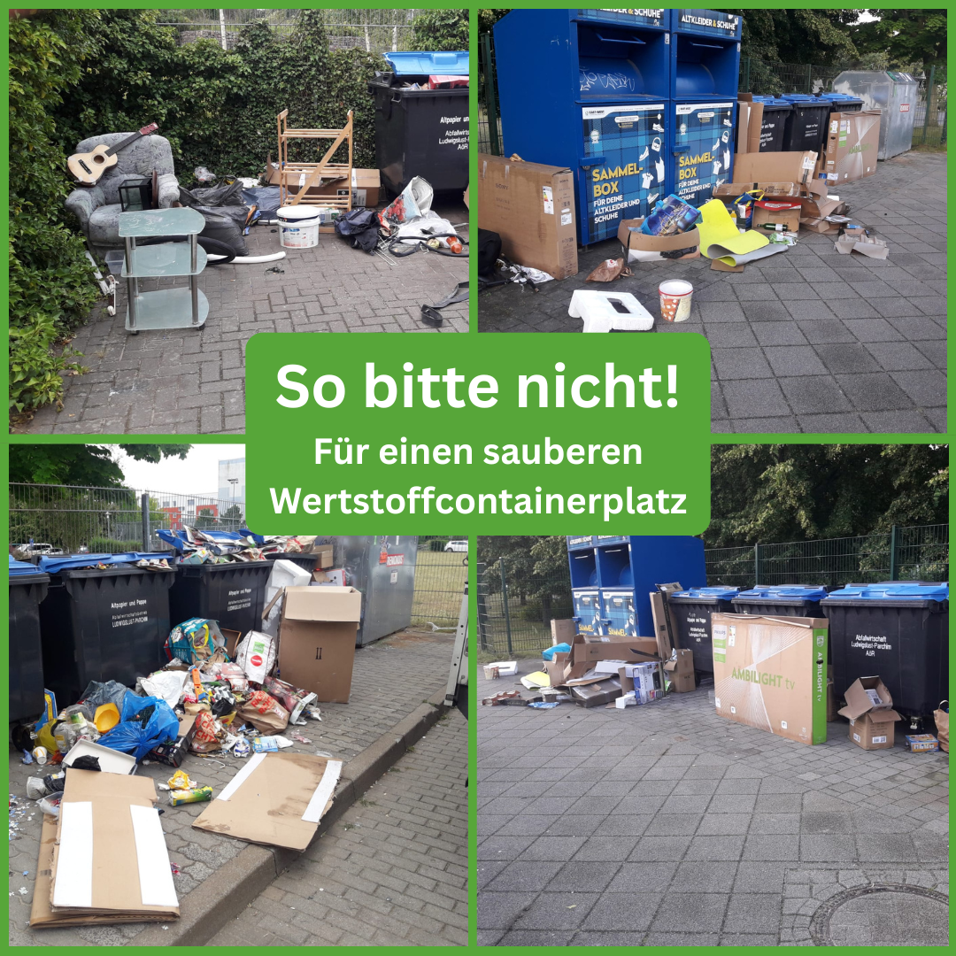 Aufgrund der zunehmenden Vermüllung und Sachbeschädigung an den Containern, mussten bereits einige Wertstoffcontainerplätze zurück gebaut werden. Sehr ärgerlich für die Anwohner, die Ihr Altpapier und Altglas vom Hausmüll trennen und umweltgerecht entsorgen möchten.